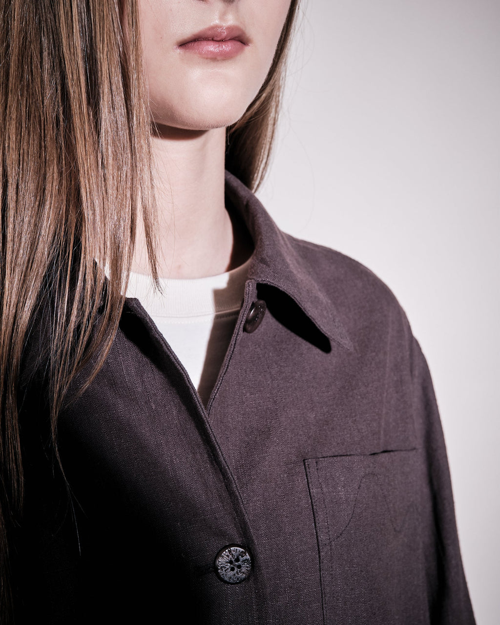 Overshirt tailored in a loose cut for a contemporary silhouette. This overshirt is crafted from a linen-cotton blend which has been washed for a soft feel to the touch. Featuring sewn buttons at front closure and cuff with slanted welt pockets at the sides.