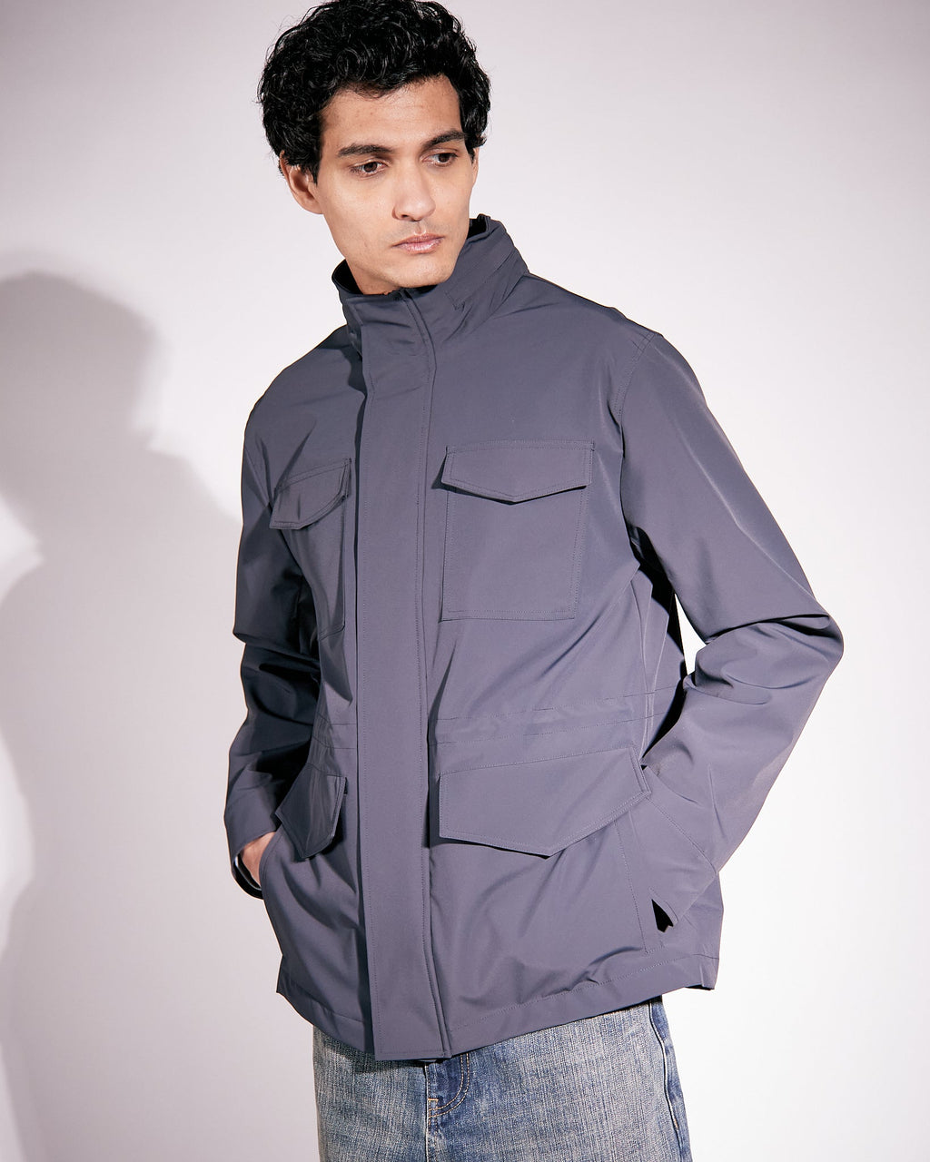 Crafted in a recycled nylon stretch quality, this is an essential utility-style jacket with inspiration taken from a classic field jacket. Cut for a straight fit with a pull cord at waist for added shape, it features two front chest pockets, two flap pockets and concealed slit pockets on the sides. Equipped with a membrane and taped seams making this jacket waterproof.