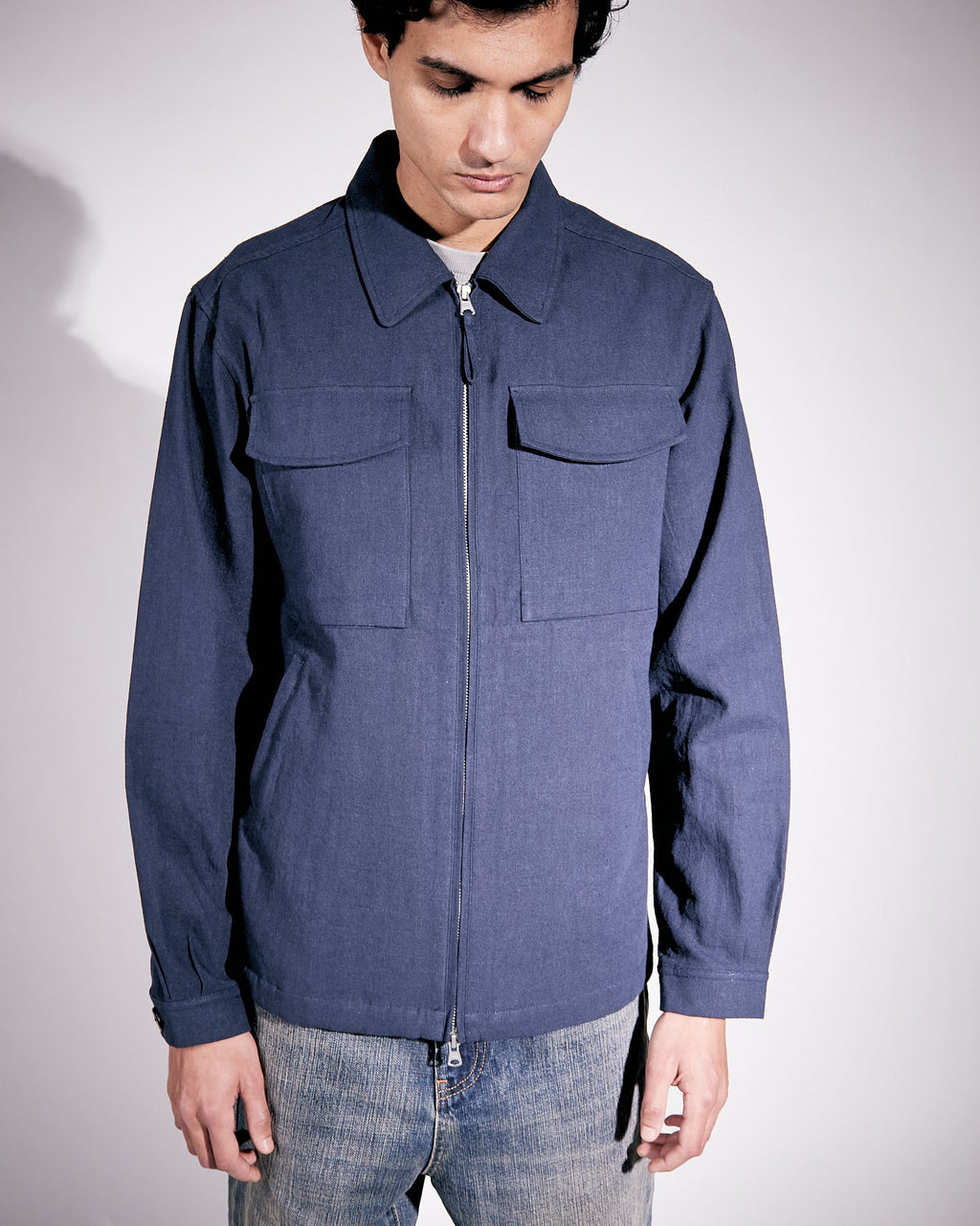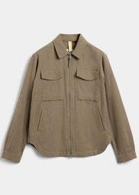 Overshirt tailored in a loose cut for a contemporary silhouette. This overshirt is crafted from a linen/cotton blend which has been washed for a soft feel to the touch. Featuring a two-way zipper at front closure, sewn buttons at cuff and diagonal welt pockets at the sides.