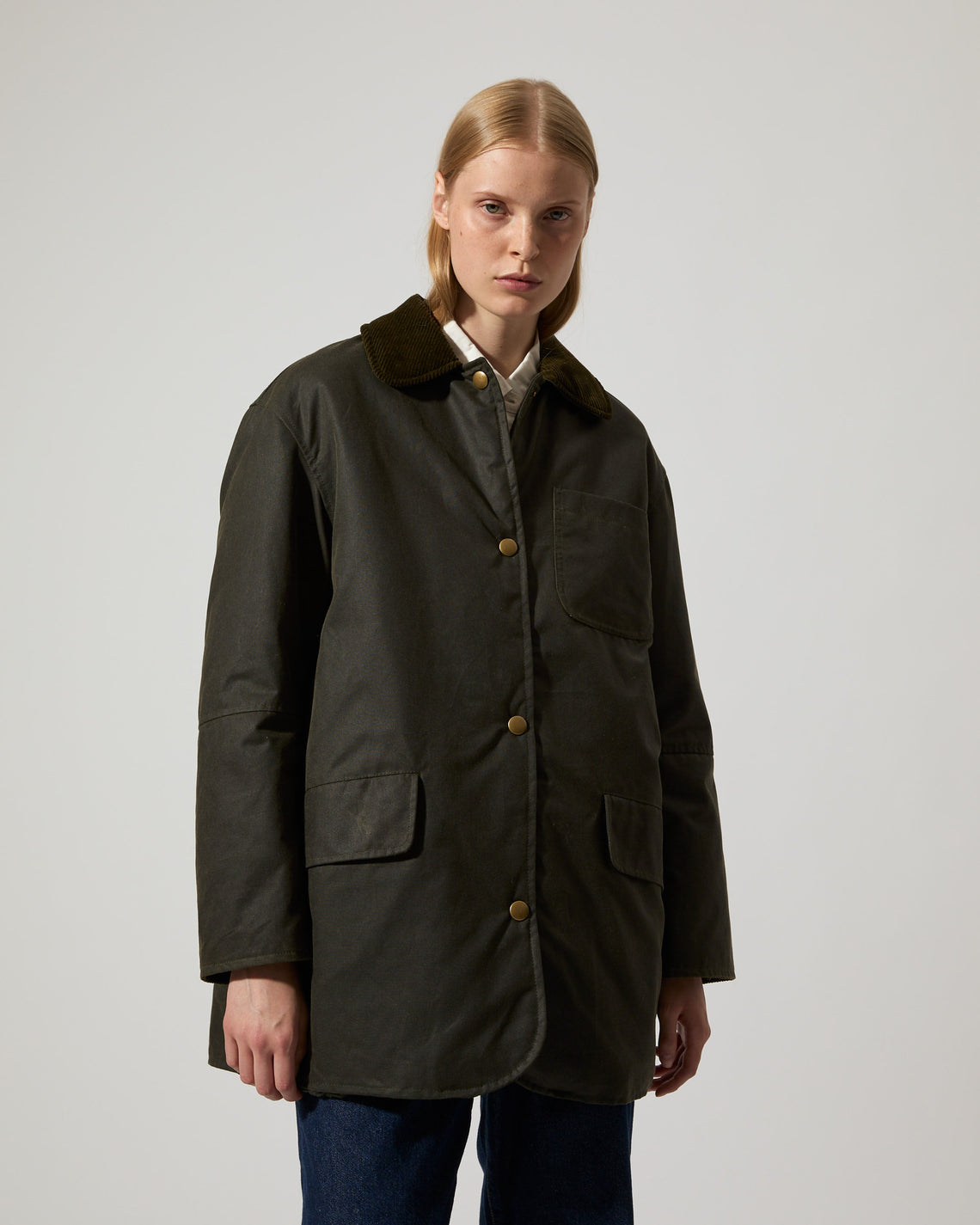 Billy Padded is an oversized waxed organic cotton jacket, manufactured in the city of Birminghamn, UK, featuring a water-resistant finish with a regular collar in corduroy. Featuring a snap-button front closure, a chest patch pocket, and two front flap pockets. Padded for added warmth. For a long lasting garment, periodically rewax the shell fabric.