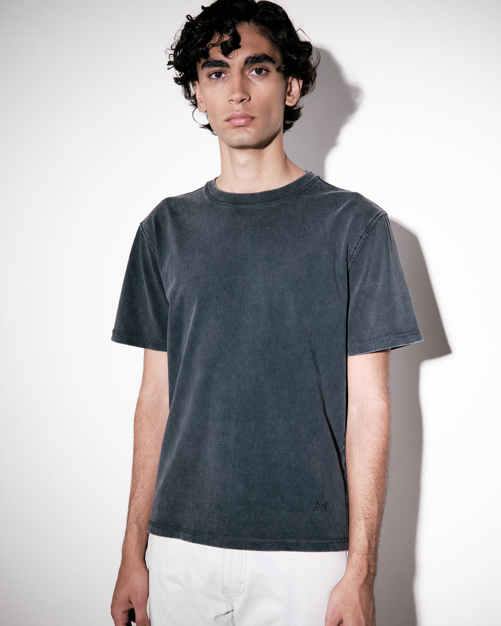 T-shirt in a classic round neckline with a ribbed collar. Regular fit with a slightly shorter length, crafted in a soft midweight jersey made from organic cotton and stonewashed for a vintage look. Small monogram embroidery at the left bottom hem.
